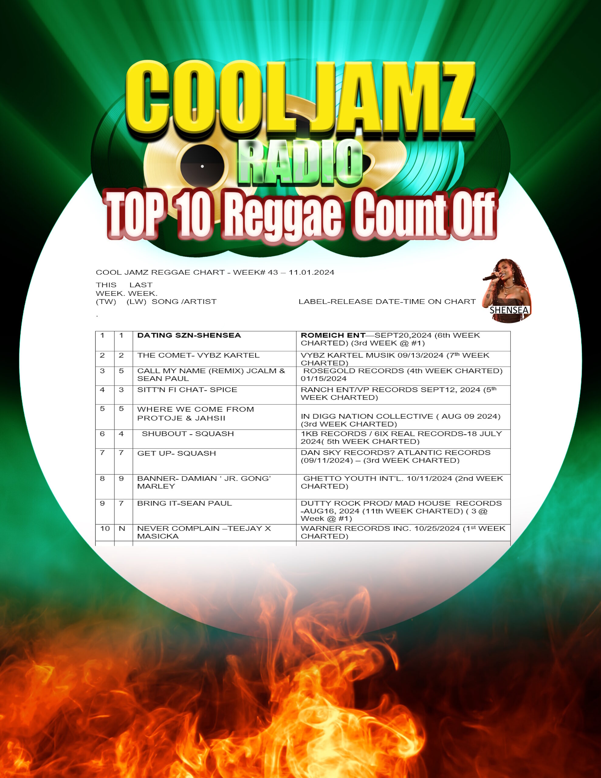 Week 43 2024 Cool Jamz Top Ten Reggae Chart